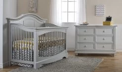 With curved moldings and rounded dowels complimented by vertical accents on the headboard, the Enna Forever Crib is a charming blend of whimsy and classical design. The curved edges that line the rounded dowels along the front of the piece provide a simple elegance and an open, window-like design. Accented with a curved foot piece, the many details of this crib work together to create a wonderfully delightful combination of style and charm that is the perfect centerpiece for any nursery. While this crib is a beautiful piece that would work nicely with any number of our nursery collections, the classically styled molding and curved accents make the Enna Forever Crib especially suited to coordinate well with pieces from both our Ragusa and Volterra Collections.