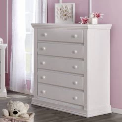 The Modena Collection has been designed to be artistically delightful as well as true to our commitment to both quality and safety. The Modena Forever Crib is crafted from sustainable wood and then finished with finishes that are regularly tested to ensure that they exceed the required standards for lead. This collection is complimented by a textured finish that is reminiscent of an antique style. It is available in Granite, a distressed gray finish, and Vintage White, a finish that is predominately white with grey highlights. Both of these finishes are lovely compliments to the traditional styling of the Modena Collection.