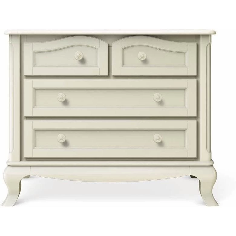 The 4-Drawer Dresser from Cleopatra Collection is perfect to keep your baby’s room organized. Wide design with large drawers and top surface storage space, it is very versatile and can be used as a changing station or for clothing and accessories storage. Cleopatra cases are standardly equipped with round wooden knobs.
