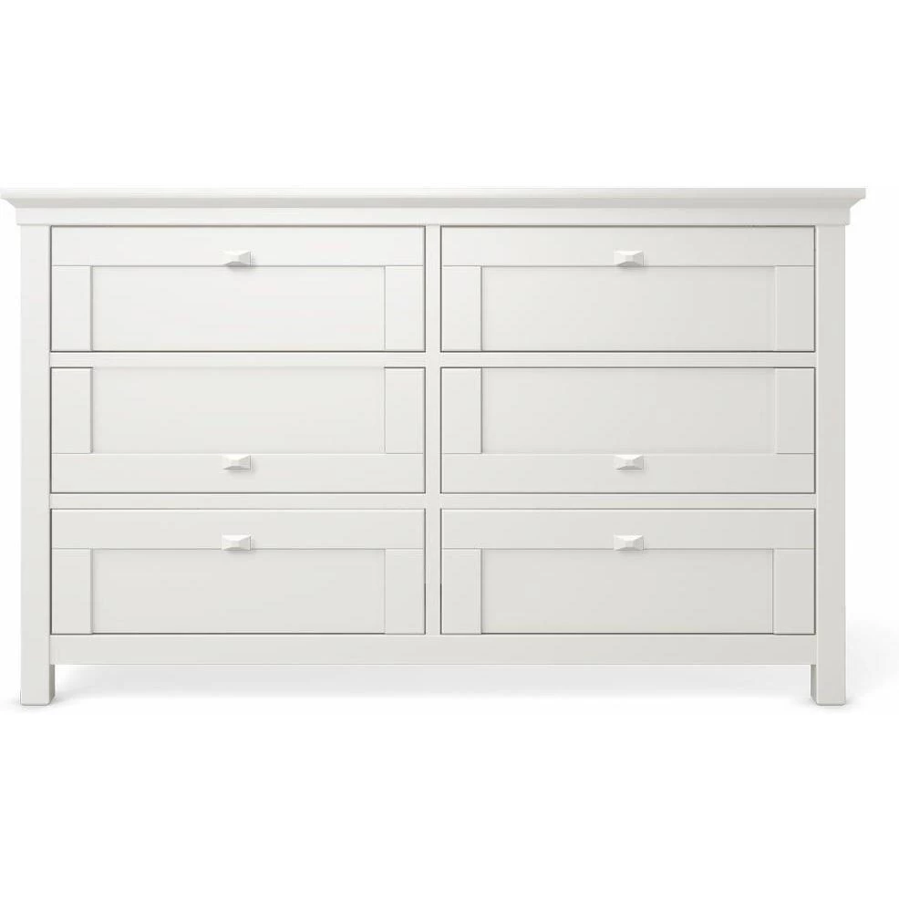 Karisma double dresser offers the most amount of drawer space and long term value. Wide design with large drawers and top surface storage space, it is very versatile and it can be used as a diaper changing station or for clothing and accessories storage. Karisma cases are standardly equipped with wooden diamond shaped knobs and the middle drawer fronts can be installed upside down complimentary.