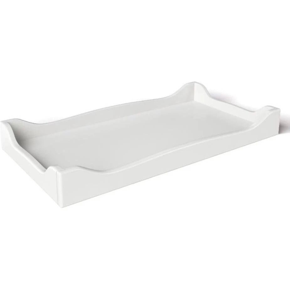 The changing tray is designed to maximize changing station safety. The scalloped edges prevent the pad (not included) from slipping and protect the dresser surface from spills and scratches. The tray can be secured from the back of dresser with two metal brackets.
