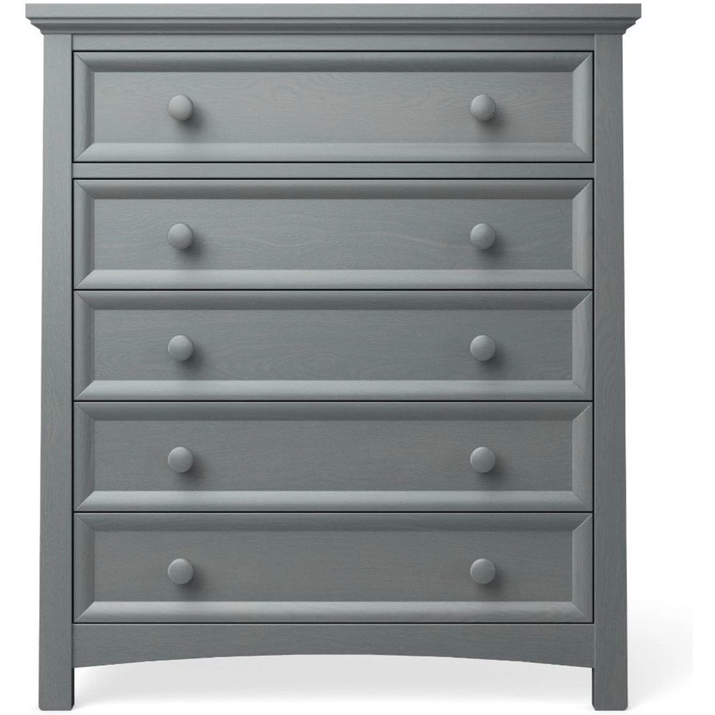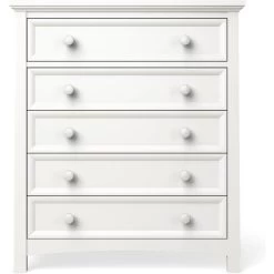Serena Tall Chest is a storage ninja. This unit takes a minimum amount of floor space and offers a maximum amount of drawer storage. Tall and handsome and featuring five deep drawers equipped with hydraulic soft-closing systems. The Serena Chest is the ideal baby furniture solution for safe and healthy nurseries.