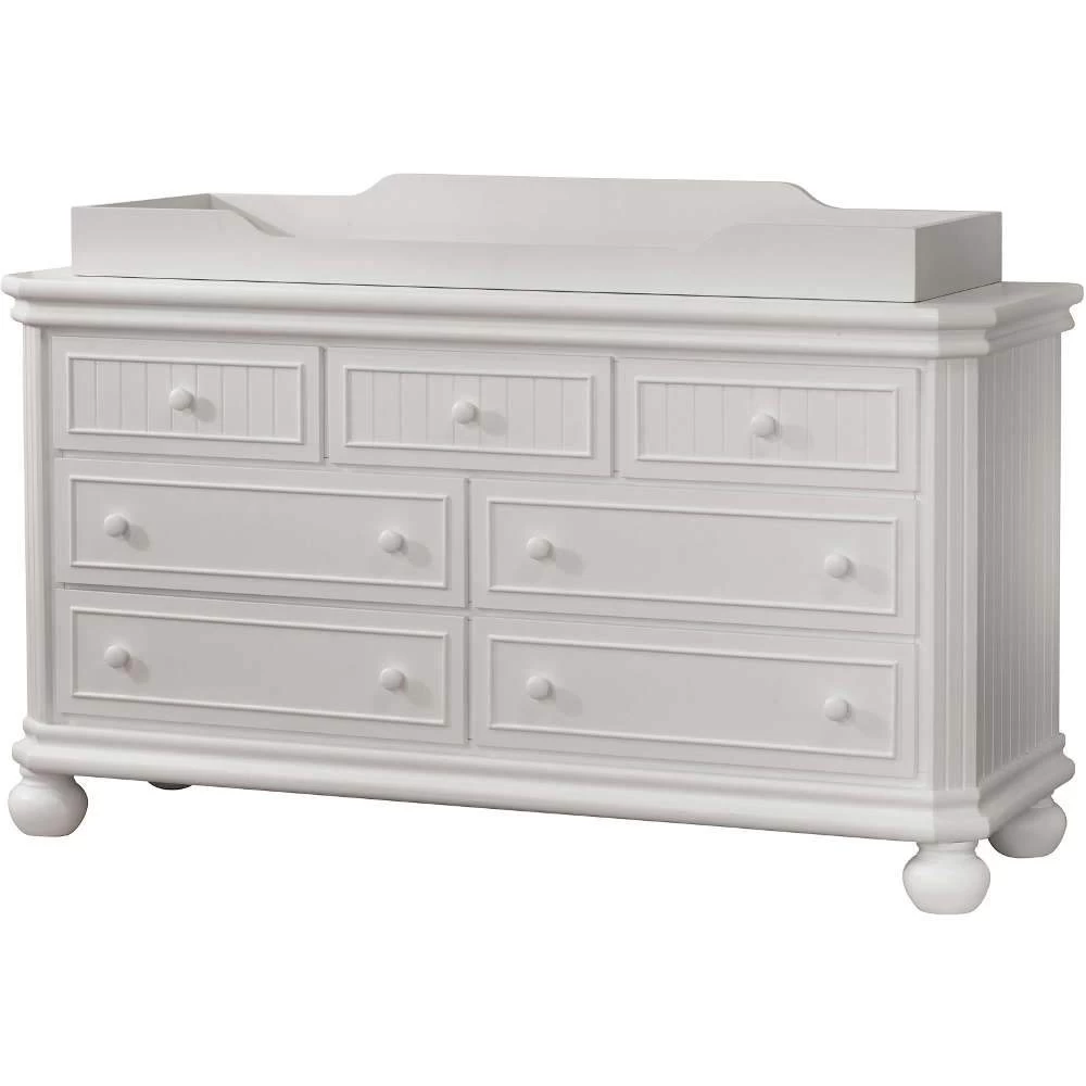 The Sorelle Topper provides a comfortable place to change your baby, and features 3 compartments to keep your essentials within reach. Keep your diapers, wipes, and lotions in one convenient place while changing your baby in the versatile Sorelle Topper. Designed for use with the Finley, Monterey, Montgomery, Providence & Verona Double Dressers (sold separately).
