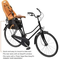 - Quick and easy mounting of the child bike seat on your bike. Fits rear bike racks with an EasyFit window or racks equipped with Thule Yepp Maxi EasyFit Adapter (sold separately)