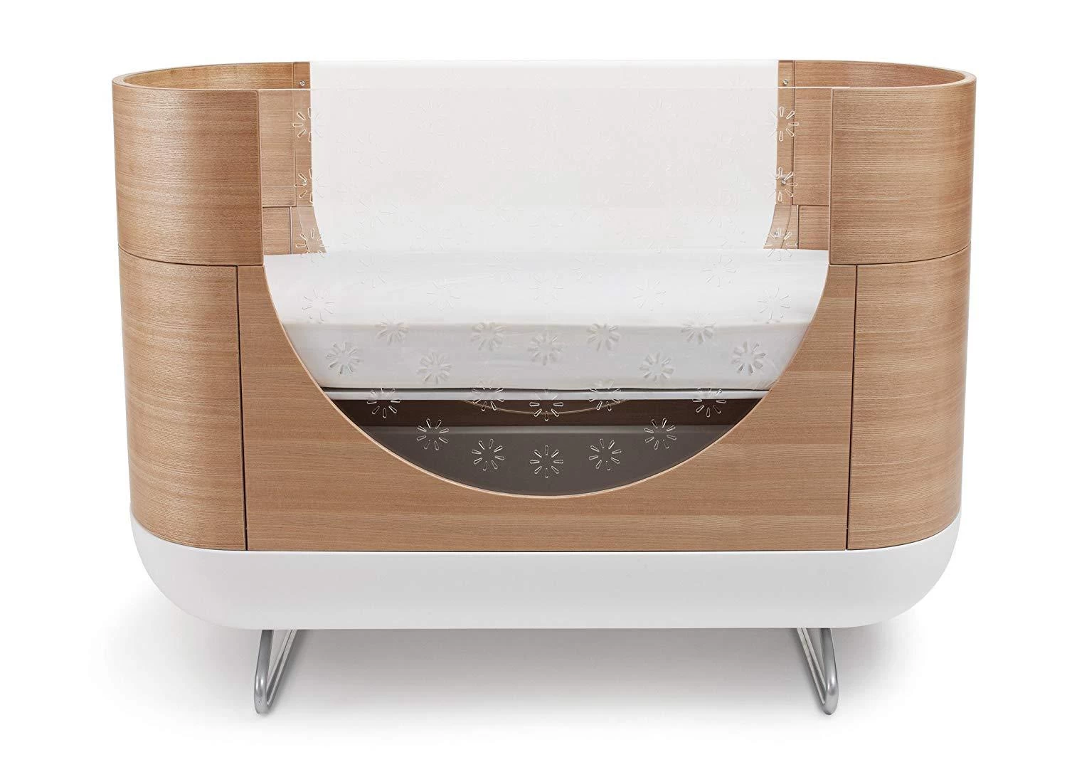 The Pod Crib is a cozy cocoon-shaped crib with smooth, rounded edges for a distinct modern look. Innovative clear acrylic sides with star-shaped cutouts allow for an unimpeded view inside the crib, making checking on baby simple. Plus, it’s easy to assemble, clean and maintain. The Pod Crib also includes a custom-fitted mattress, toddler bed conversion kit and features two adjustable mattress positions.