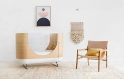 We broke the mold with the Ubabub by MDB Pod Crib (quite literally) when we decided to fuse futuristic design with hand-crafted manufacturing and finishing processes. Each Pod Crib is created by hand with naturally sourced materials including hygroscopic wood. Our finishing process allows the wood to breathe; slight expansion or contraction of the bent wood is natural as the curves of the Pod Crib react to the temperature and humidity of your home’s environment. Don’t worry if your crib doesn’t align perfectly; just as the character of every child is expressed individually, the character of each Ubabub by MDB Pod Crib will develop over time.