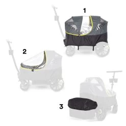 The Weather Cover is built with every detail in mind  to ensure happy and dry cruising. Ultra-premium clear plastic panels maximize views, multiple vents allow for airflow, weatherproof zipper allows for easy passenger access. Storage pouch attaches to Cruiser for convenient transportation.
