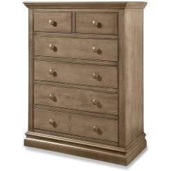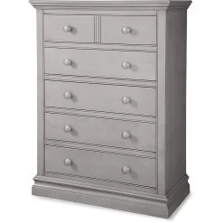 The Pine Ridge/ Stone Harbor 5 Drawer Chest coordinates with either the Pine Ridge or Stone Harbor Cribs. This beautifully designed chest has matching the lines to either of the cribs and completes every nursery. The 5 drawer chest has wooden dovetail drawers, smooth, strong, and quiet steel ball bearing drawer glides, and features traditional furniture construction.
